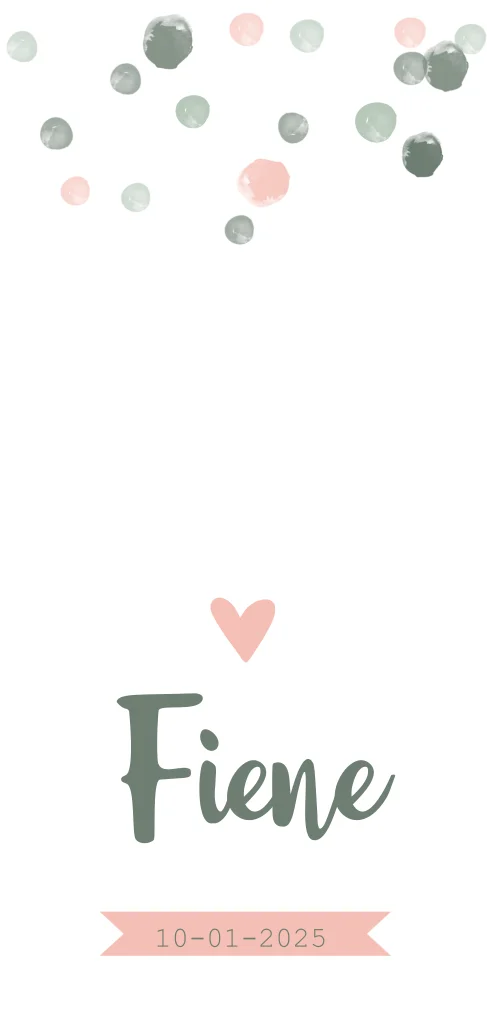 Hip meisjes geboortekaartje in staand lang 21x10 cm model met confetti en hartje in roze en groen. (256)