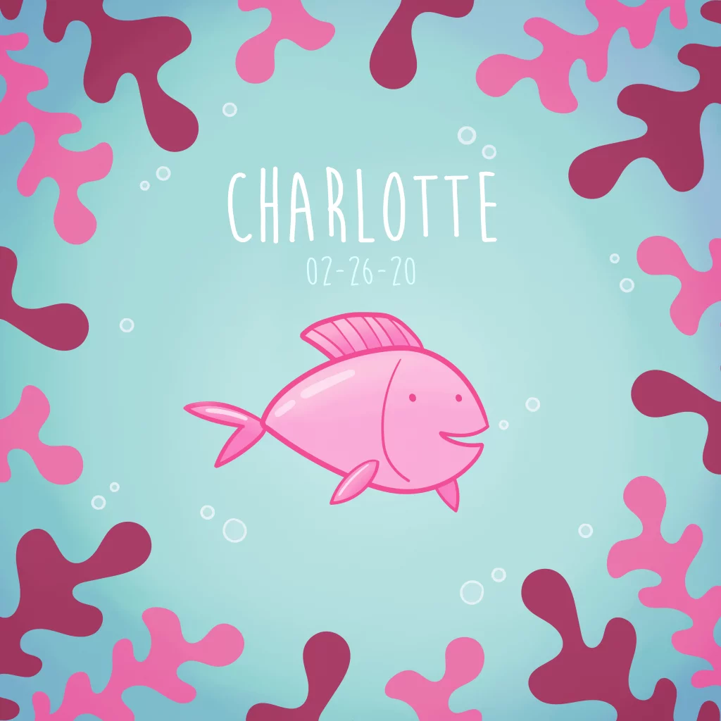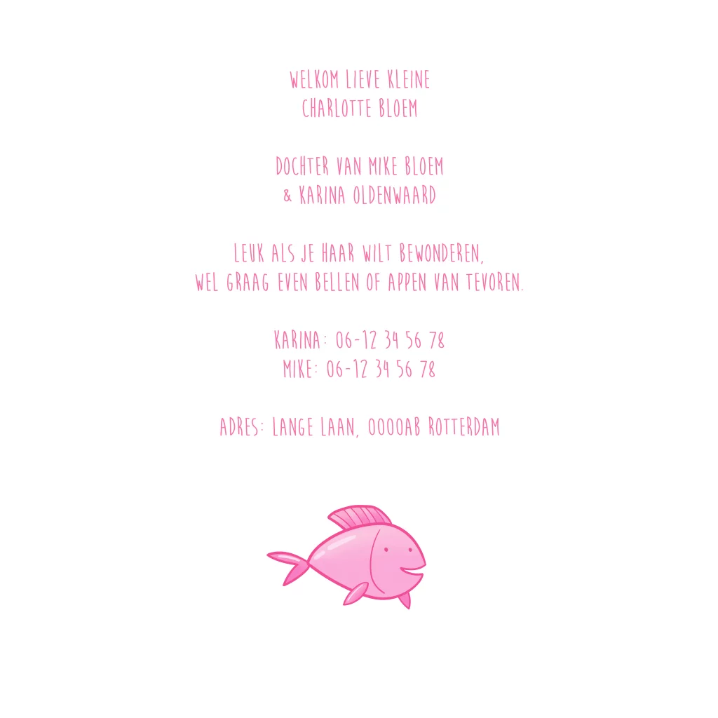 Vrolijk baby visje geboortekaart meisje roze zee. (4114)