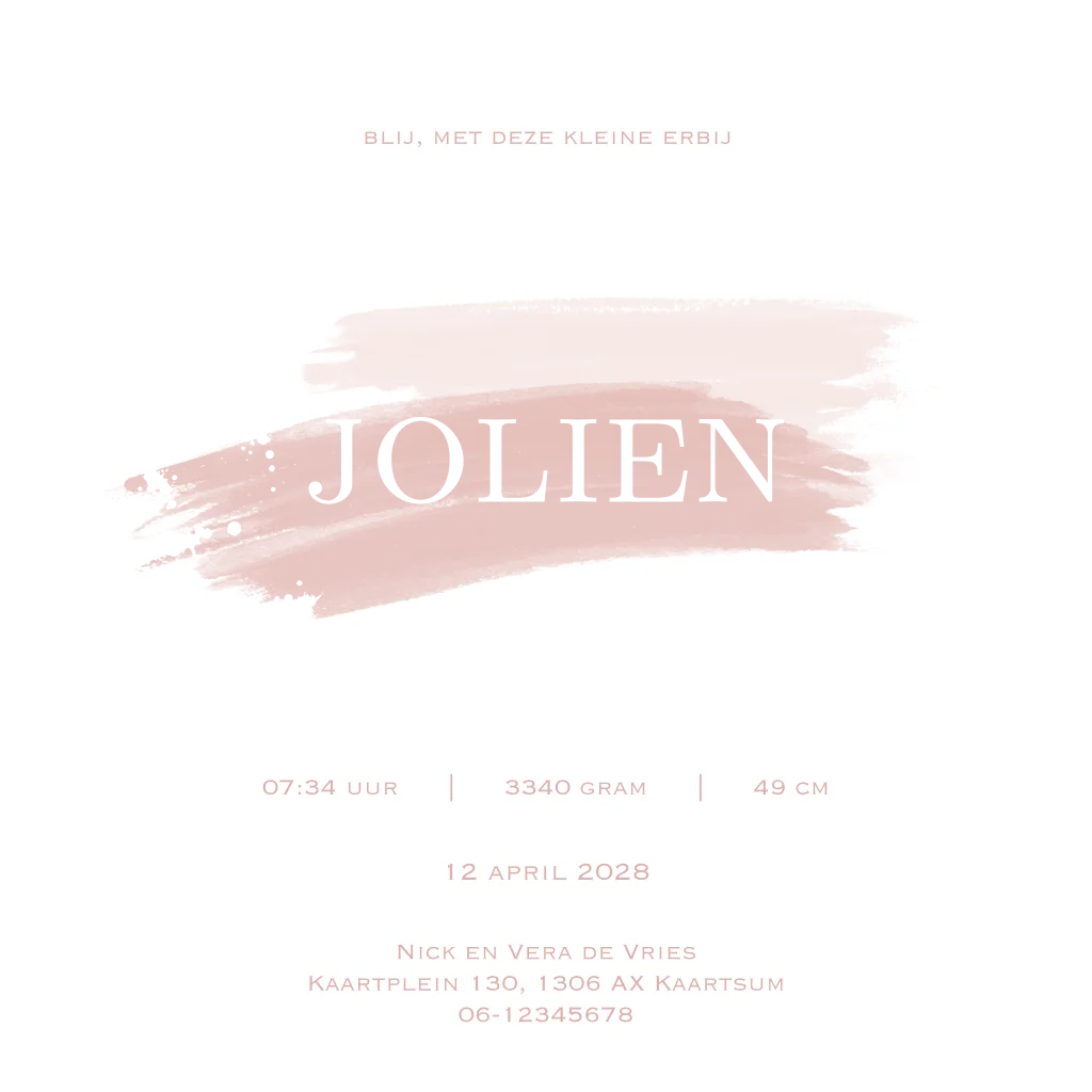Watercolor geboortekaartje voor een meisje met roze aqaurel.