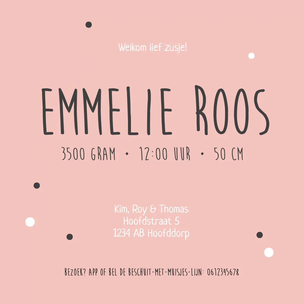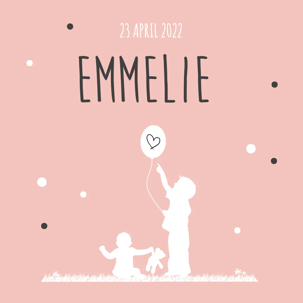 Droom jij ook over hoe jouw 2 kindjes later samen zullen spelen en mooie herinneringen gaan maken? Dit hippe geboortekaartje geeft vast een klein voorproefje. De roze kleur kan eventueel worden aangepast naar een andere mooie kleur.