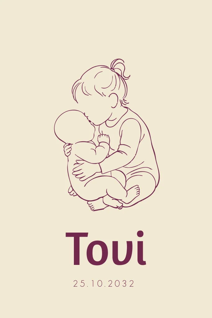Lief geboortekaartje met silhouet van een kindje, pas het ontwerp persoonlijk aan in onze online editor.