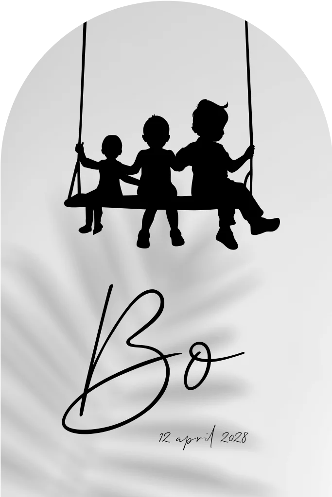 Stijlvol geboortekaartje met silhouet op schommel.