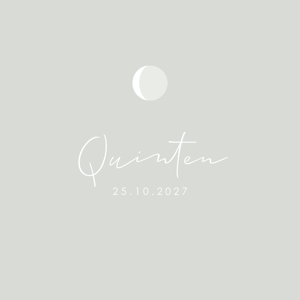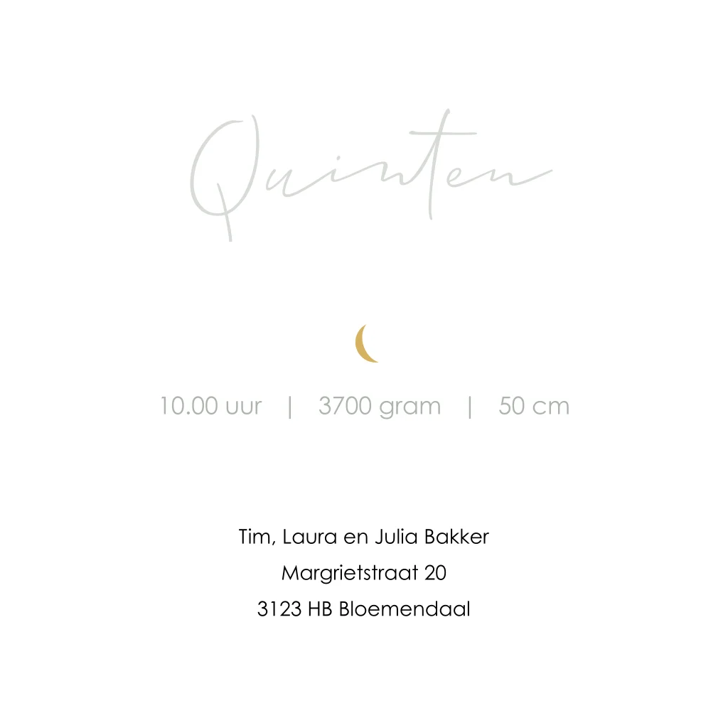 Een grijs geboortekaartje met gouden letters voor zowel een jongen als meisje. Bewerk naar wens in onze editor.