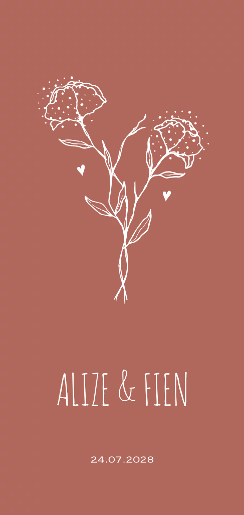 Geboortekaartje twins meisje met bloemen in foliedruk.