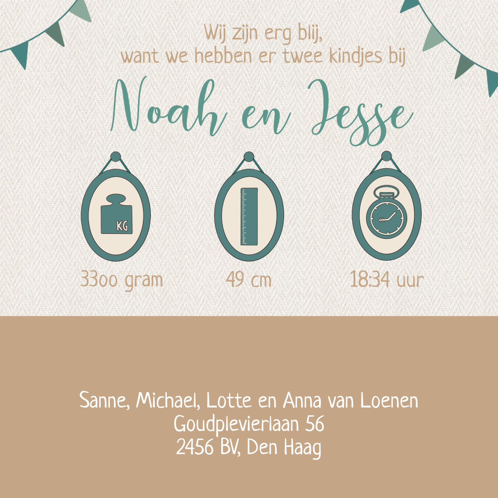 Geboortekaartje 4e kindjes tweeling jongens grote broers