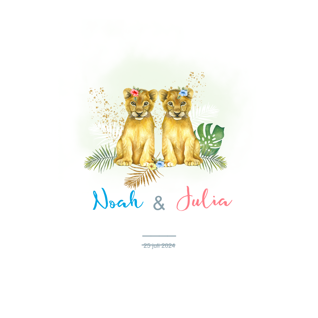 Geboortekaartje leeuwtjes tweeling jongen meisje