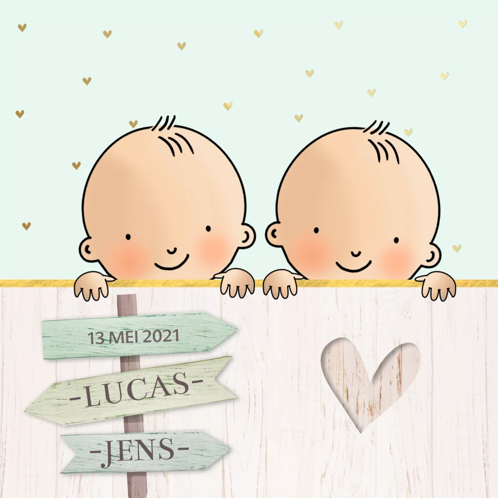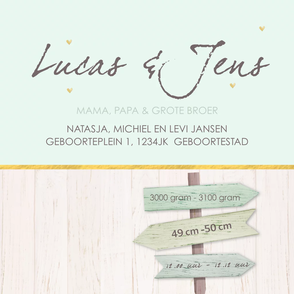 Geboortekaartje tweeling jongen met sloophout. (168)