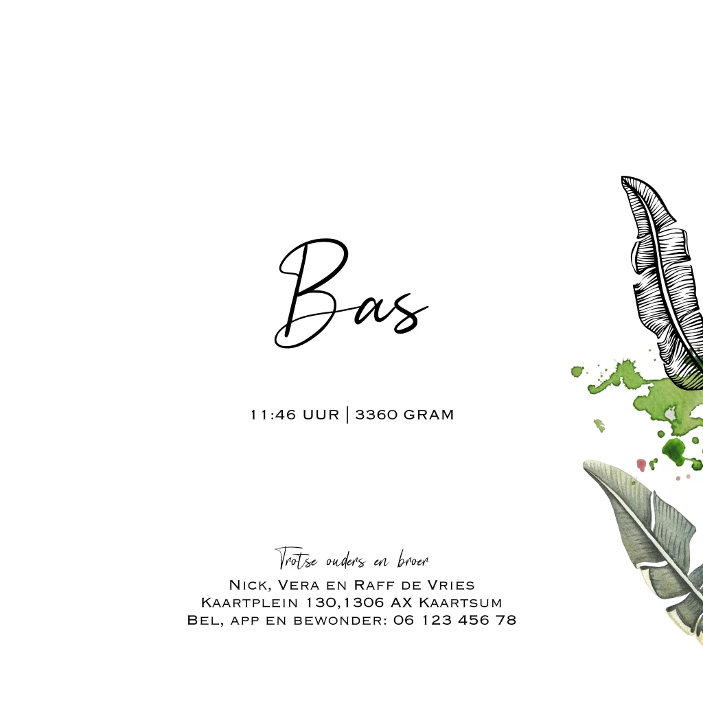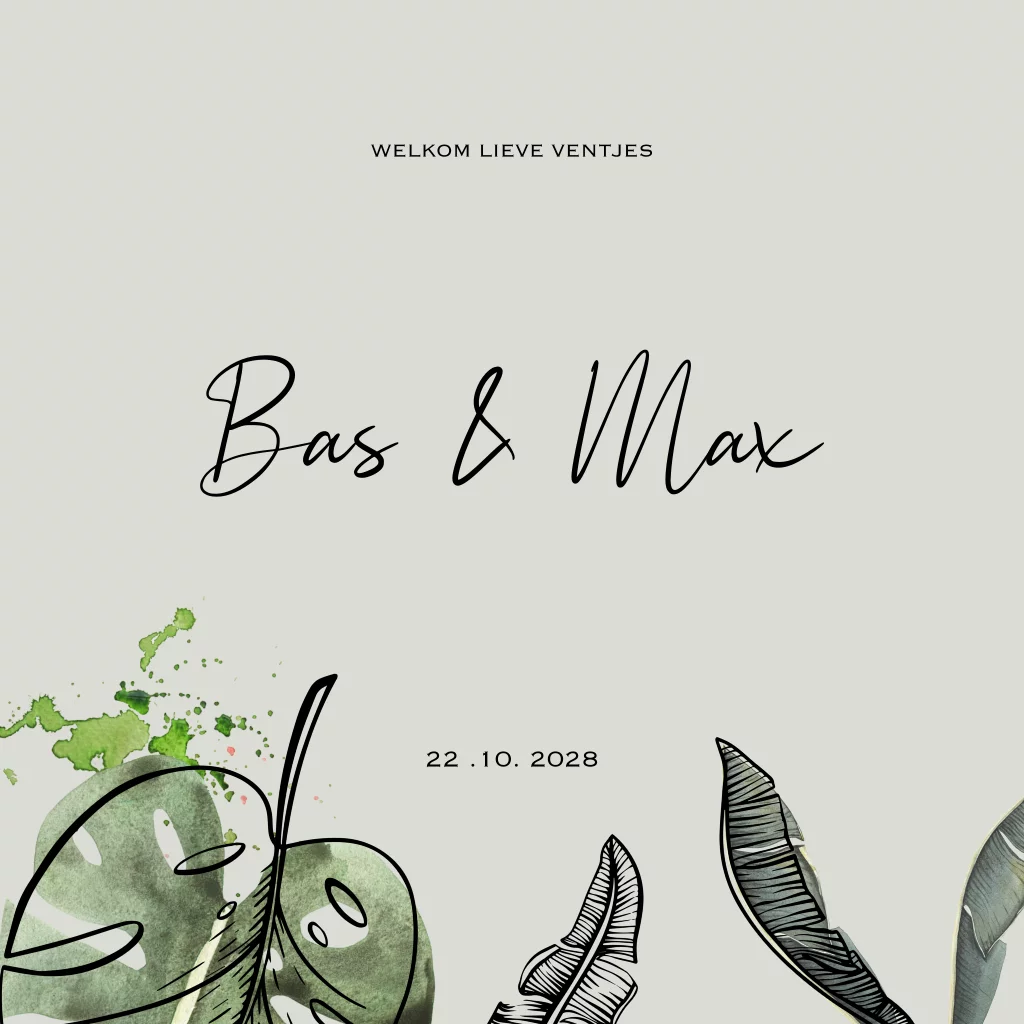 Geboortekaartje hip voor een jongens tweeling met palmboombladeren.