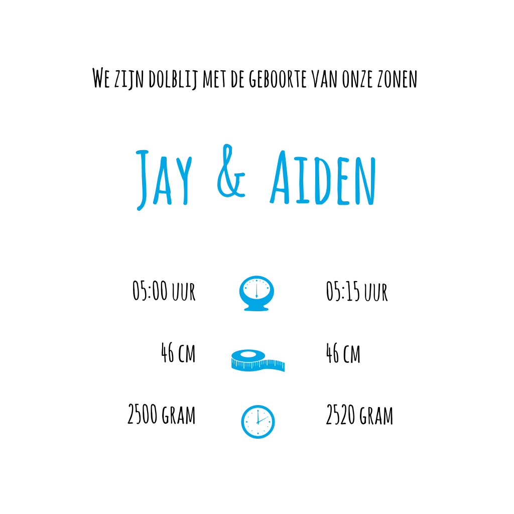 Geboortekaartje tweeling met sterren. Op parelmoerpapier komen de kaarten van dit tweelingkaartje goed tot zijn recht. Tip: Met een sluitzegel maak je dit kaartje compleet.