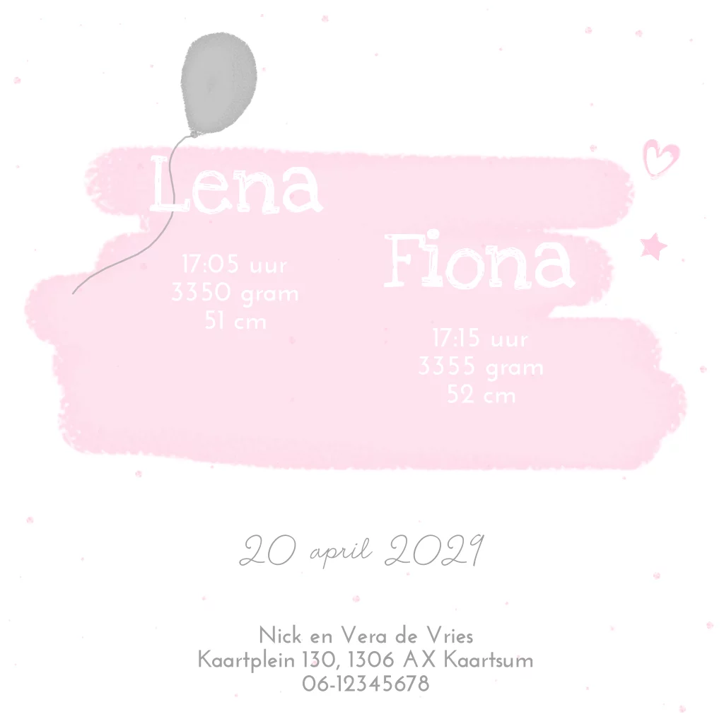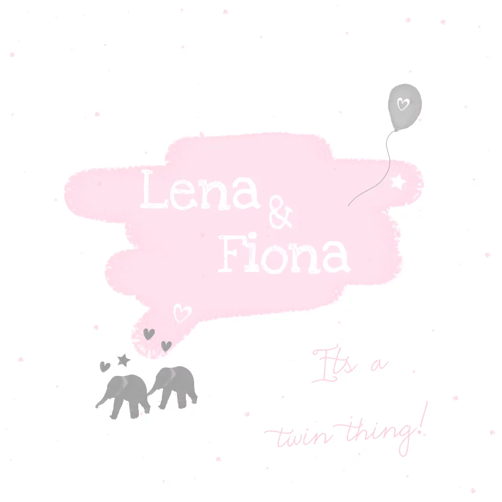 Geboortekaartje lief tweeling zusjes met ballon en olifantjes.