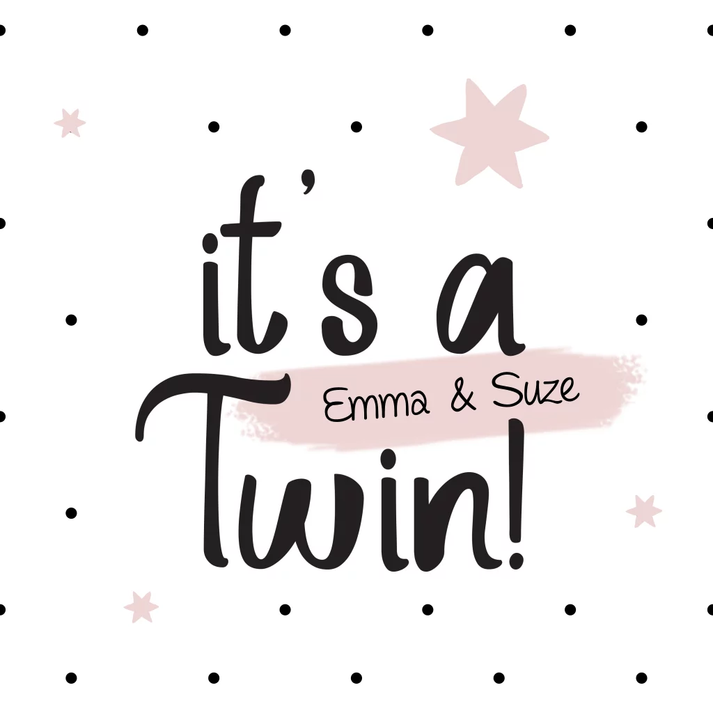 Hip geboortekaartje meisjes tweeling zusjes roze sterretjes en stippen.