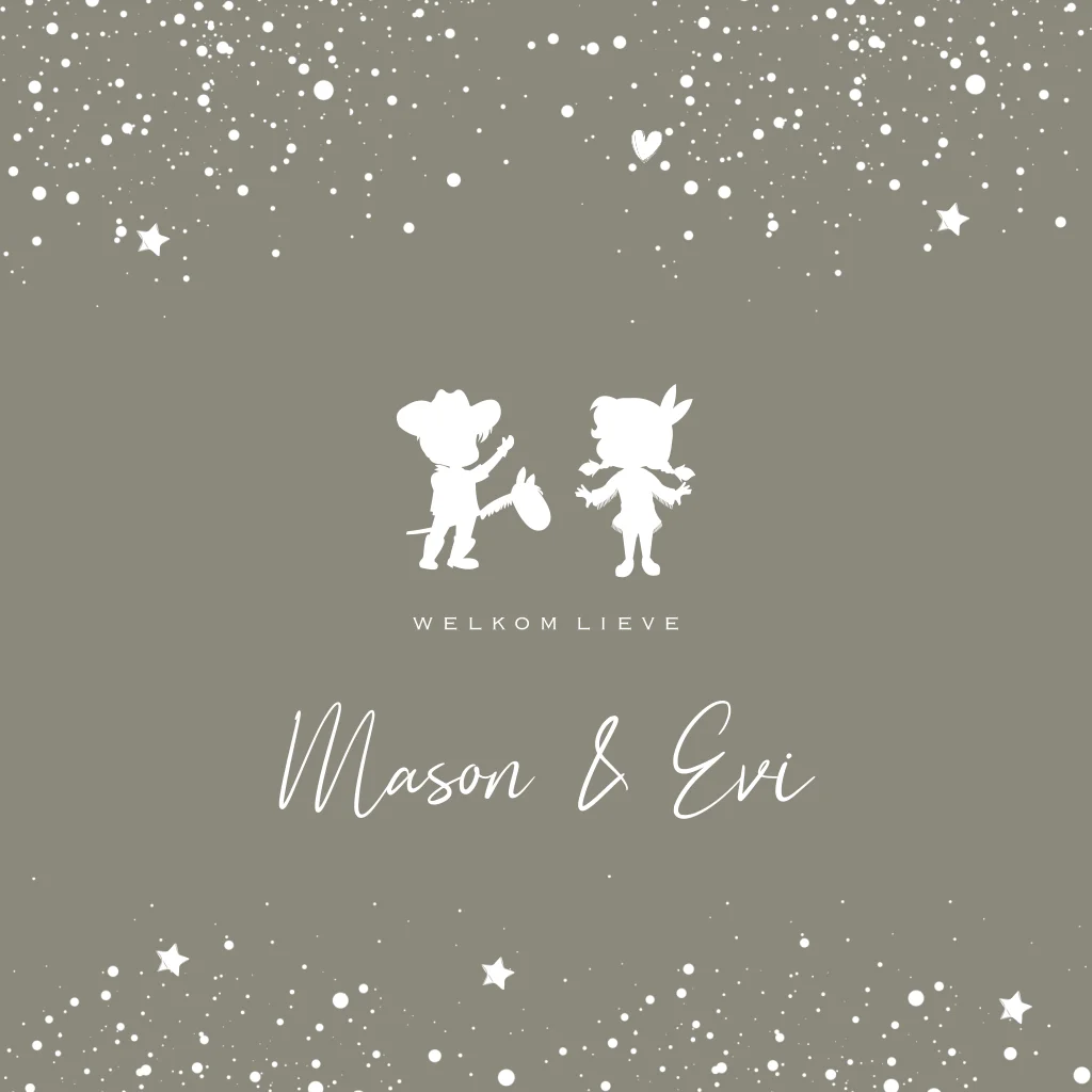Stoer silhouet geboortekaartje tweeling jongen meisje