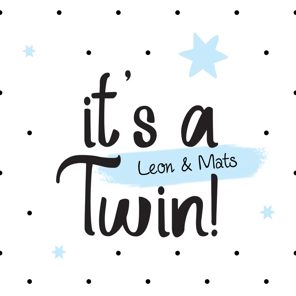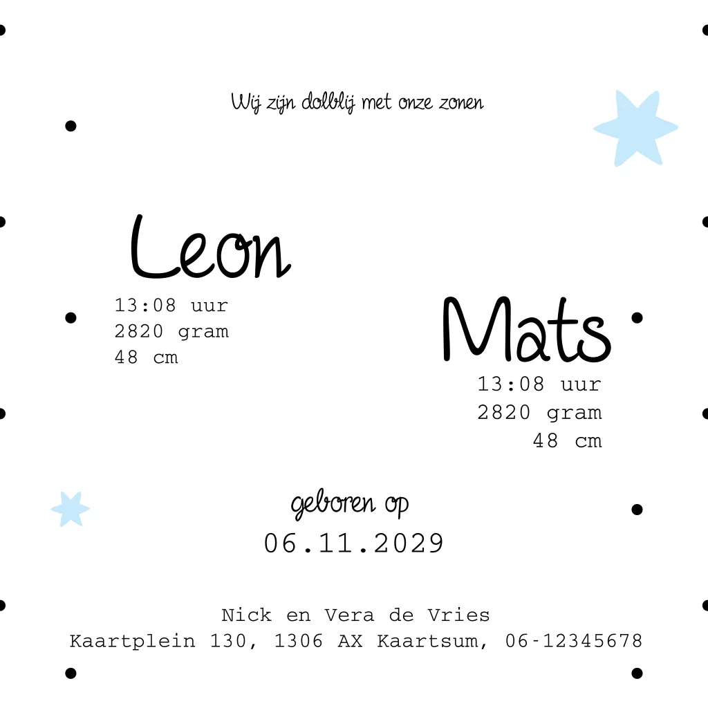 Hip babykaartje jongens tweeling twin met stippen en sterren.