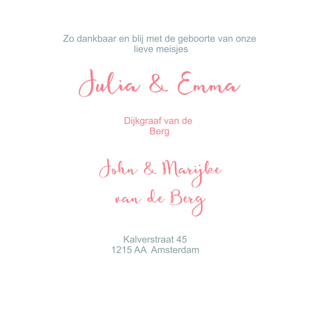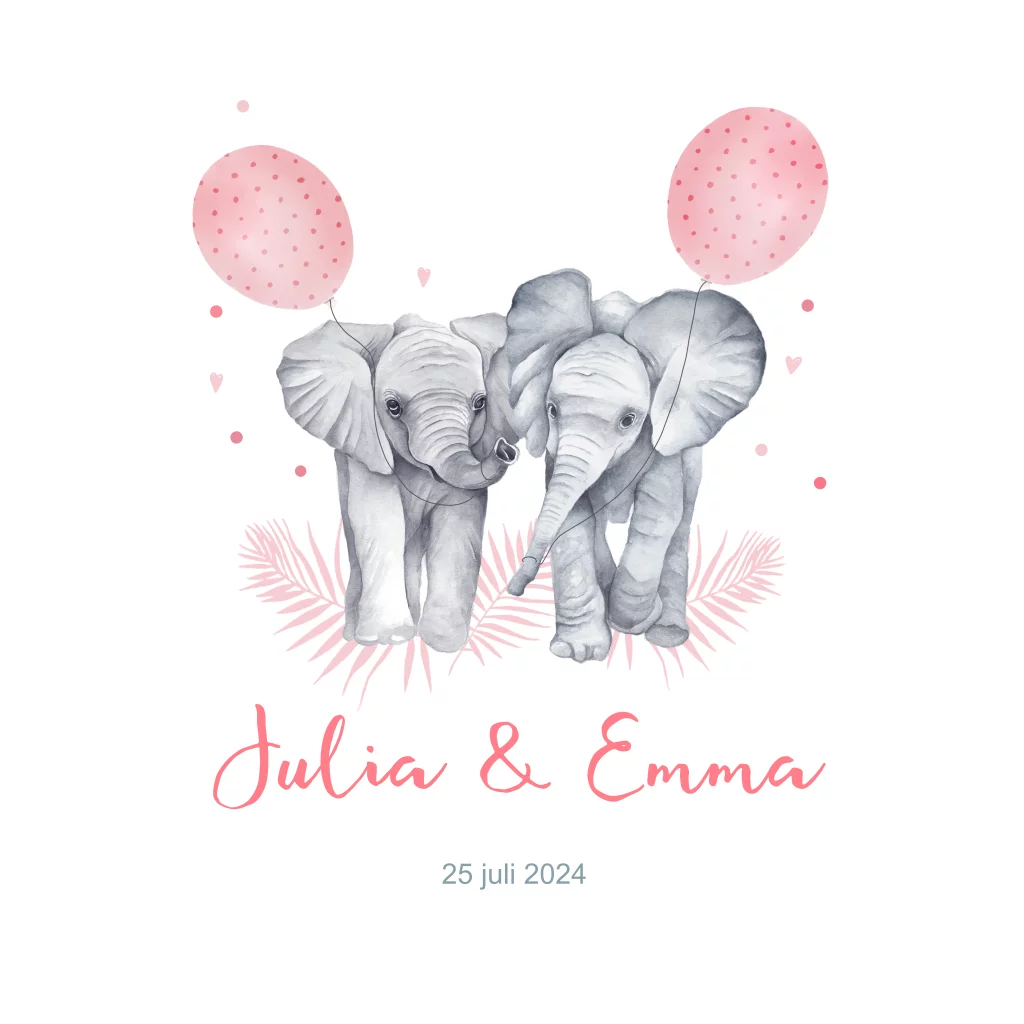 Tweeling geboortekaartje meisjes olifantjes ballonnetjes