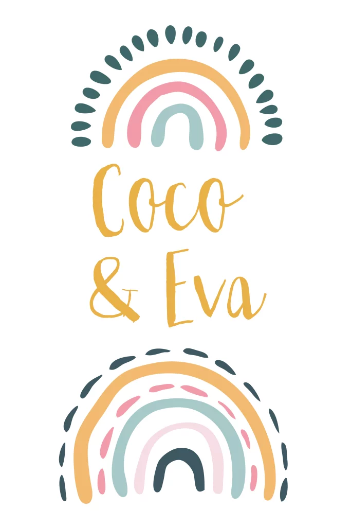Een vrolijk geboortekaartje voor een tweeling met regenboog. (4573)