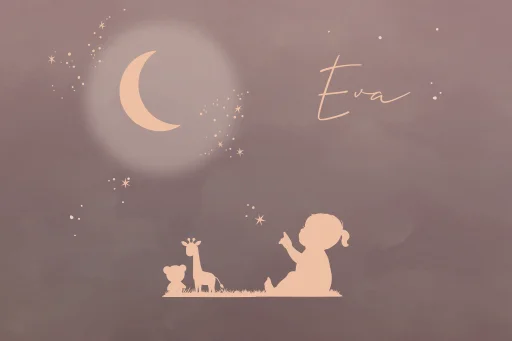 Houten bewaarbox in donker roze met maan en sterren