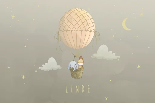 Memorybox voor een meisje met een luchtballon met olifantje en giraf tussen de maan en sterren. Een magisch ontwerp uit de collectie 'winterliefde'.