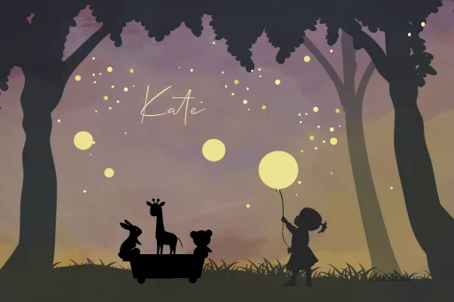 Memorybox et silhouet van een meisje in het bos die een ballon vasthoudt. Met een bolderkar vol lieve dieren. Een magisch ontwerp uit de collectie 'winterliefde'.