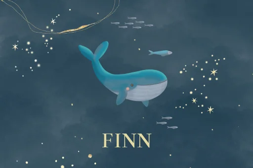 Memorybox voor een jongetje met walvis en vissen tussen de sterretjes. Een magisch ontwerp uit de collectie 'winterliefde'.