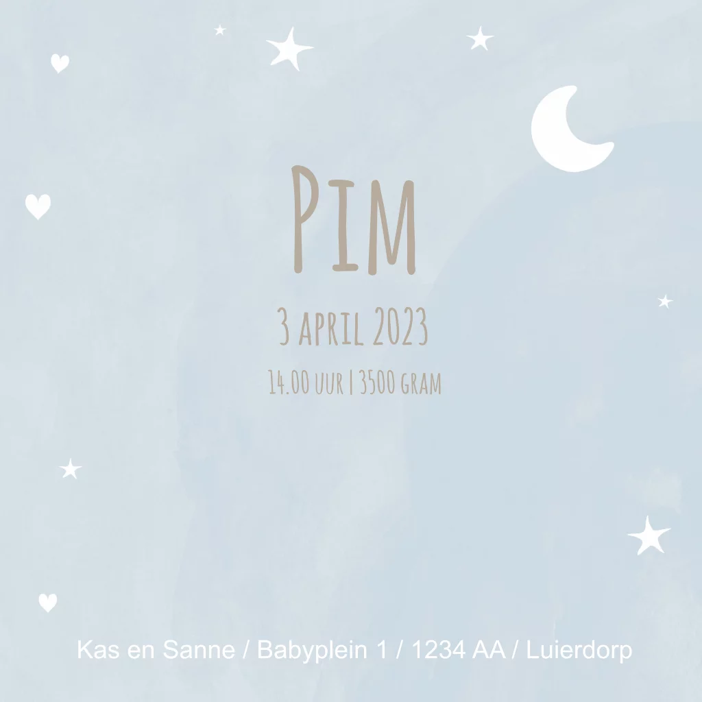 Lief en hip geboortekaartje jongen met maan en sterretjes