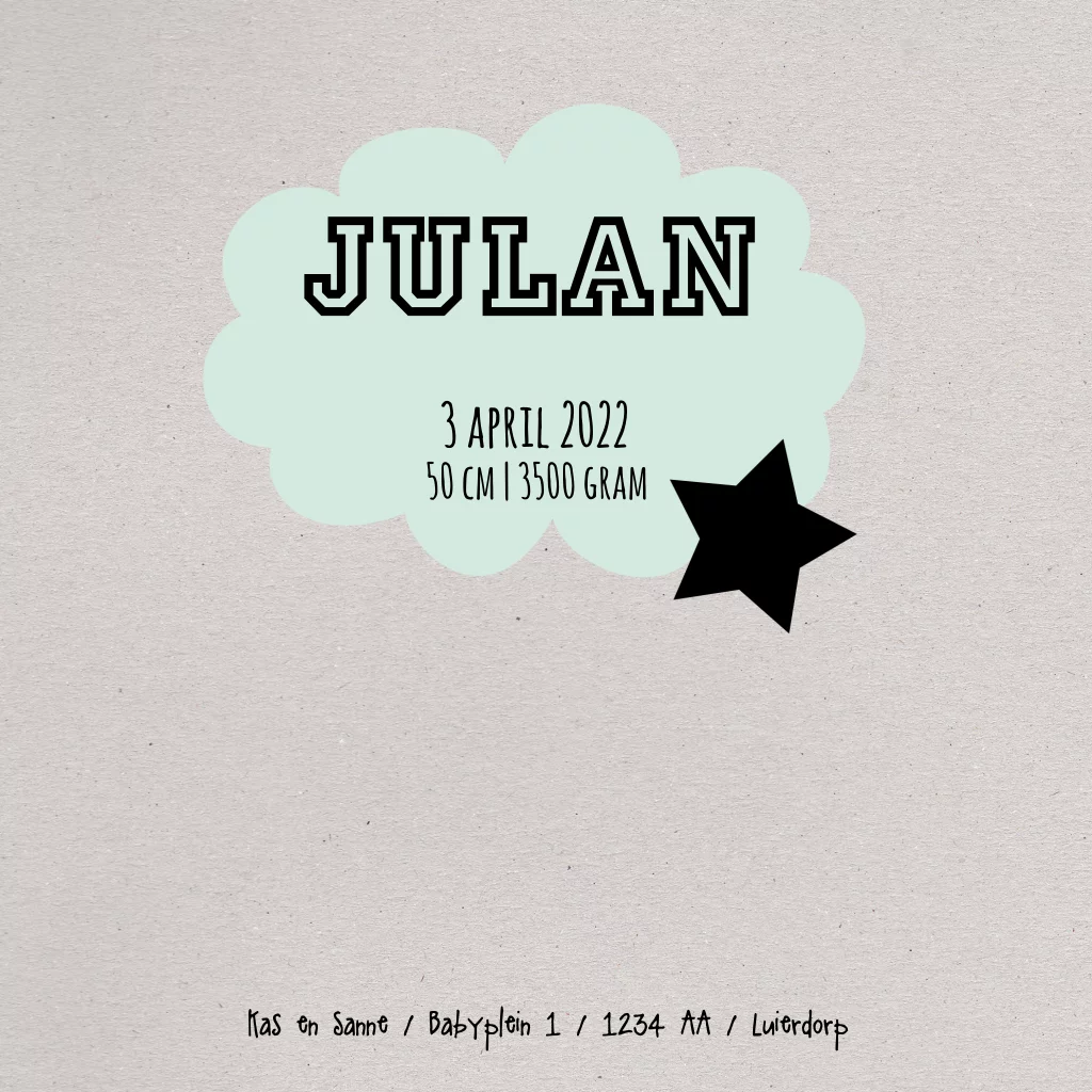 Hip jongens geboortekaartje wolkje op grijze achtergrond