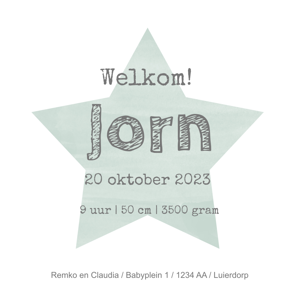Stoere mintgroene geboortekaart met stempel