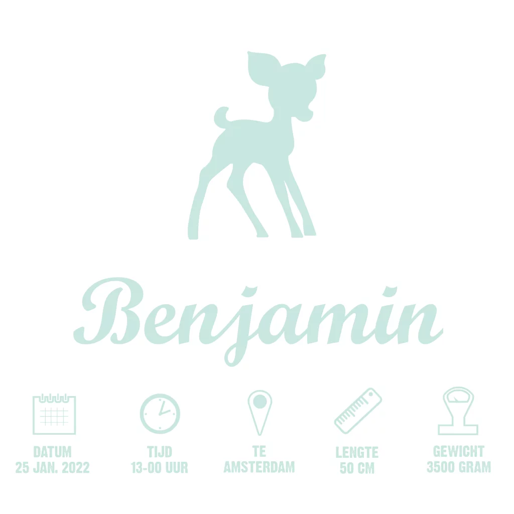 Eenvoudig geboortekaartje met hert voor een jongetje