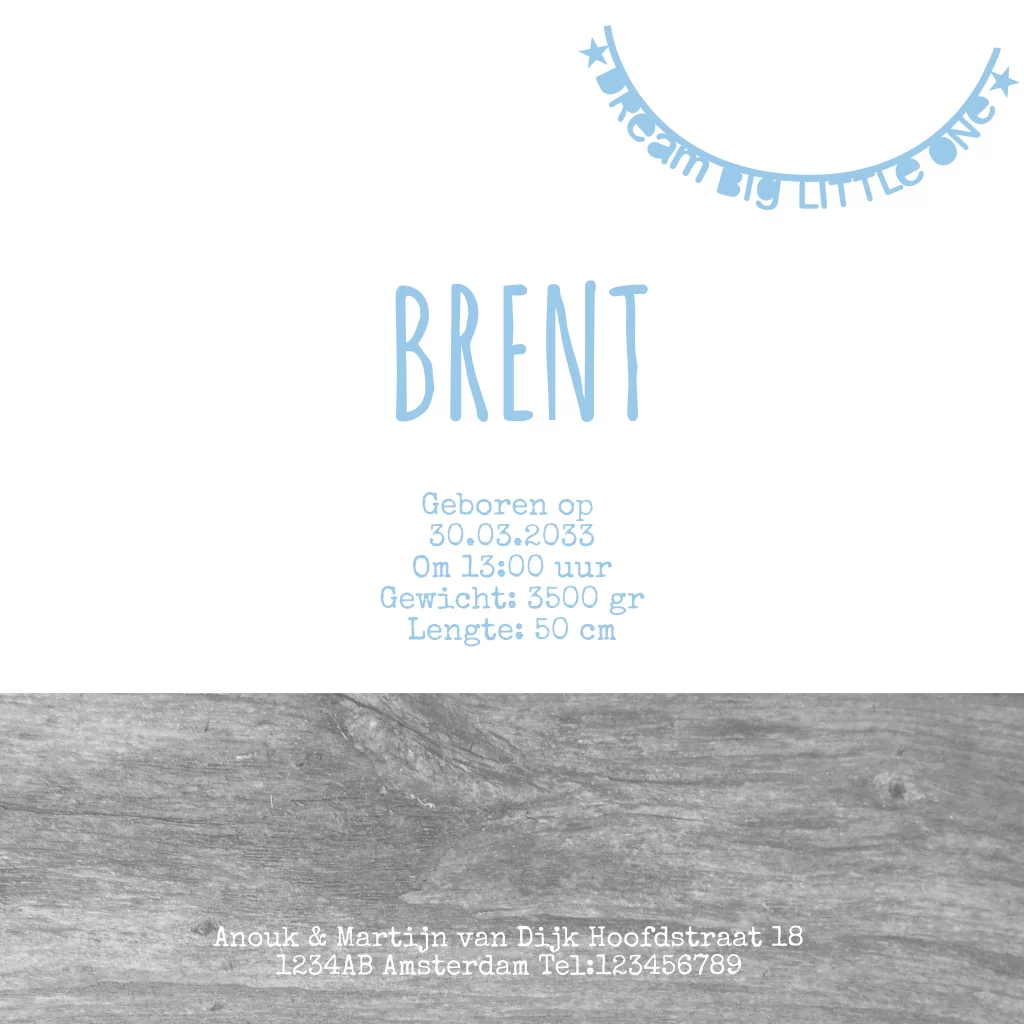 Geboortekaartje tipi letterslinger jongen