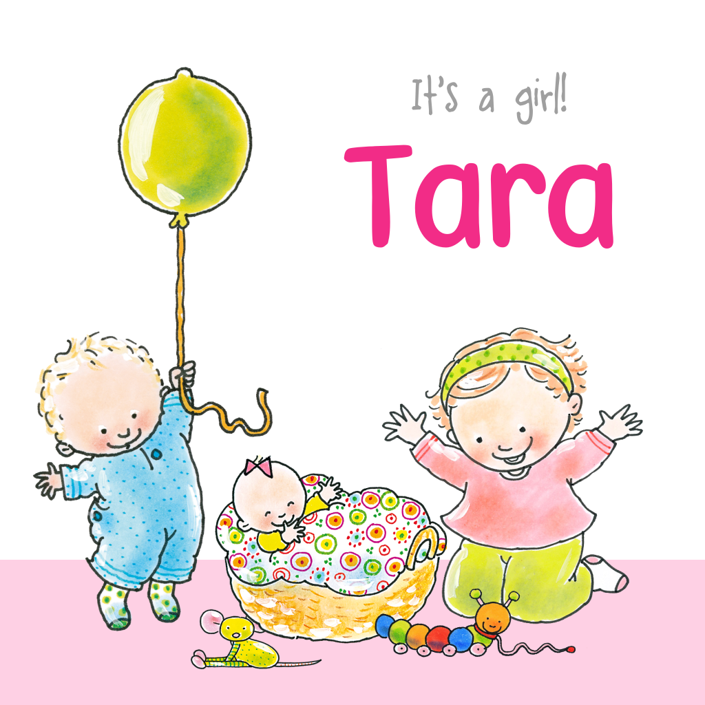 Krijg jij een derde kindje en is het een meisje? Dit lieve geboortekaartje van Pauline Oud is precies wat je nodig hebt. Er staat een peuter met een ballon op, een kleuter en een baby in een mandje.