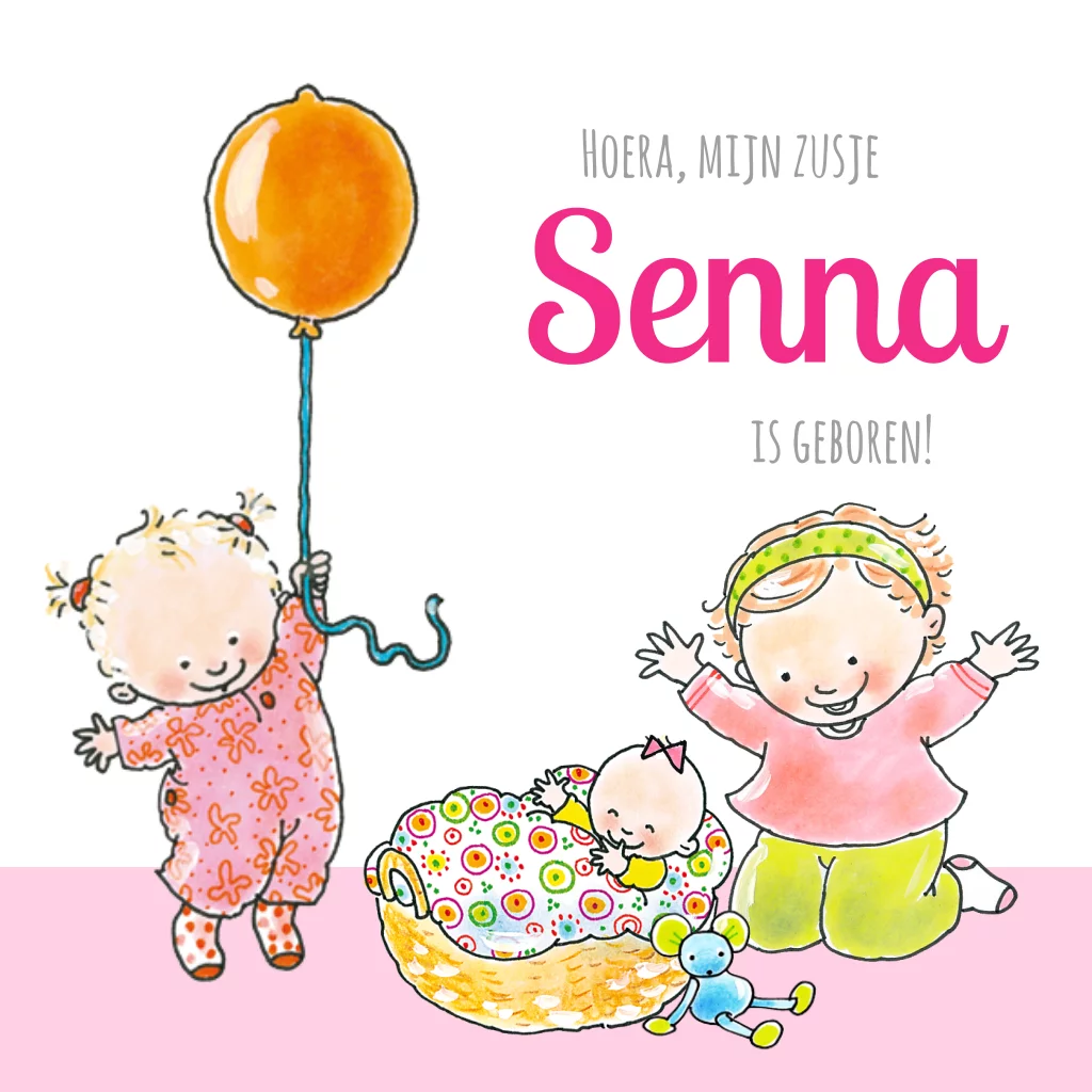 Heb jij een meisjesgezin? Op dit vrolijke geboortekaartje van Pauline Oud zie je 3 meisjes geschilderd. Natuurlijk de baby in de wieg, een klein zusje en een grote zus. Enorm leuk!