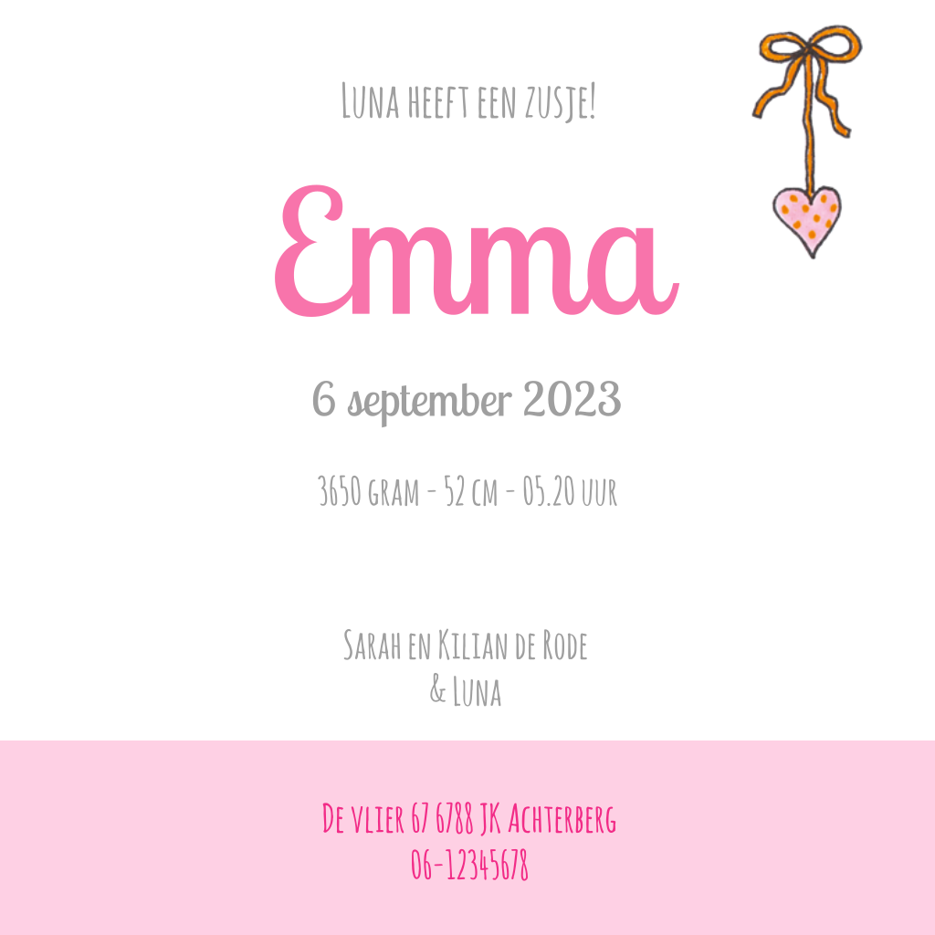 Krijgen jullie een tweede dochter? Dan is dit kaartje van Pauline Oud wat voor jullie! Pas de achtergrondkleuren en teksten gemakkelijk aan. Zo maak je dit geboortekaartje helemaal eigen.