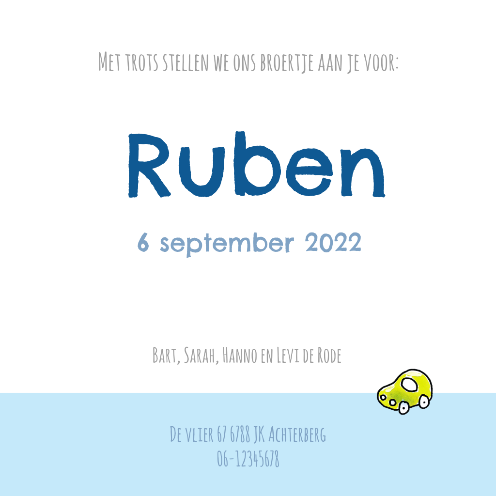 Krijg jij de derde jongen op een rij? Leuk! Dit kaartje laat twee trotse broers zijn, die naar de baby kijken. Op de grond ligt wat speelgoed en aan de binnenkant zie je de baby nog een keer.