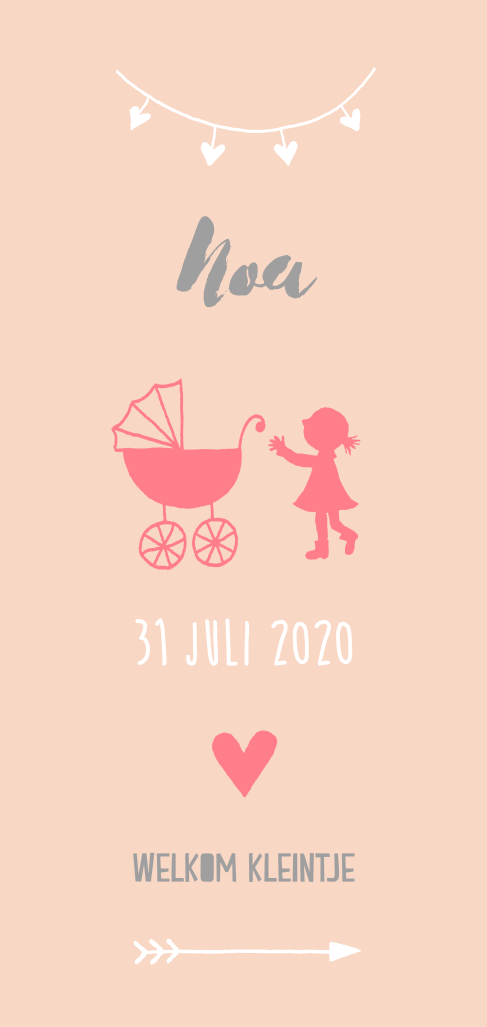 2e kindje geboortekaartje meisje silhouet kinderwagen