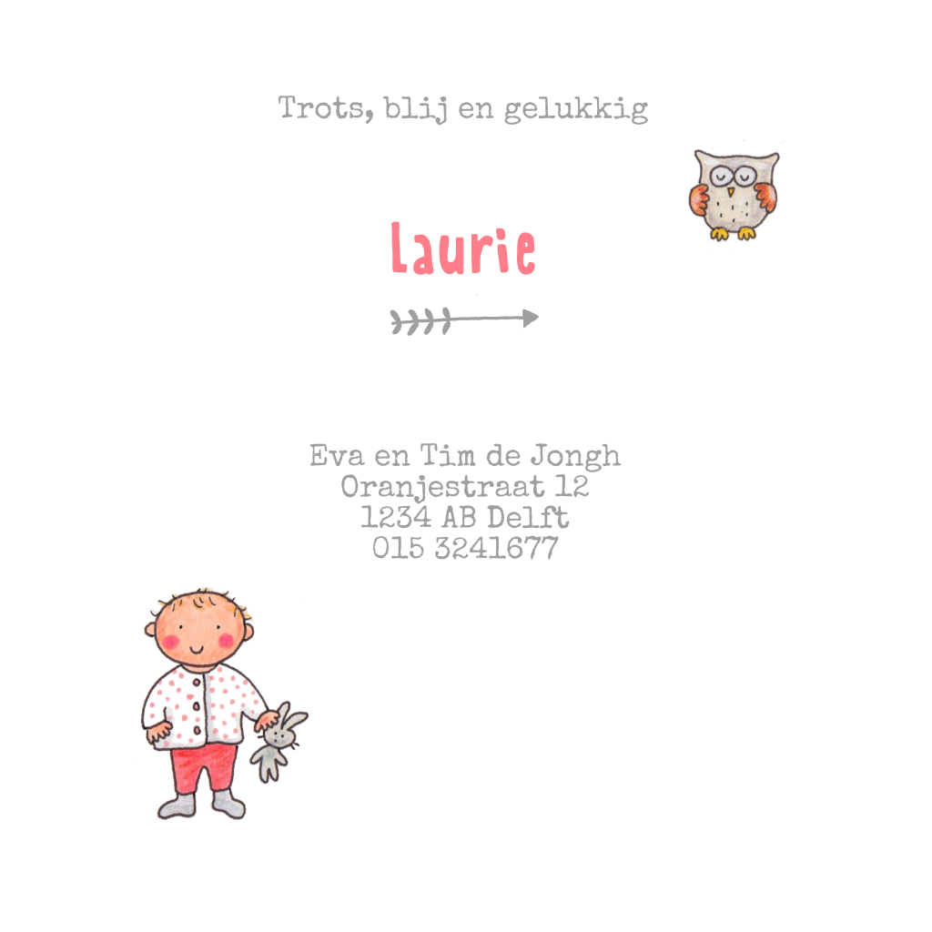 Geboortekaartjes van Studio Mouche met vrolijke tekeningen