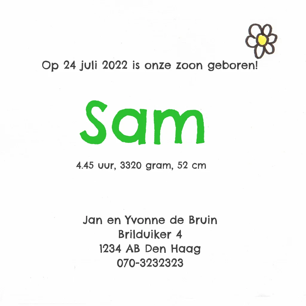 Fris en blij geboortekaartje met bloemetjes en een lief eendje. Leuk en origineel ontwerp van Studio Mouché.