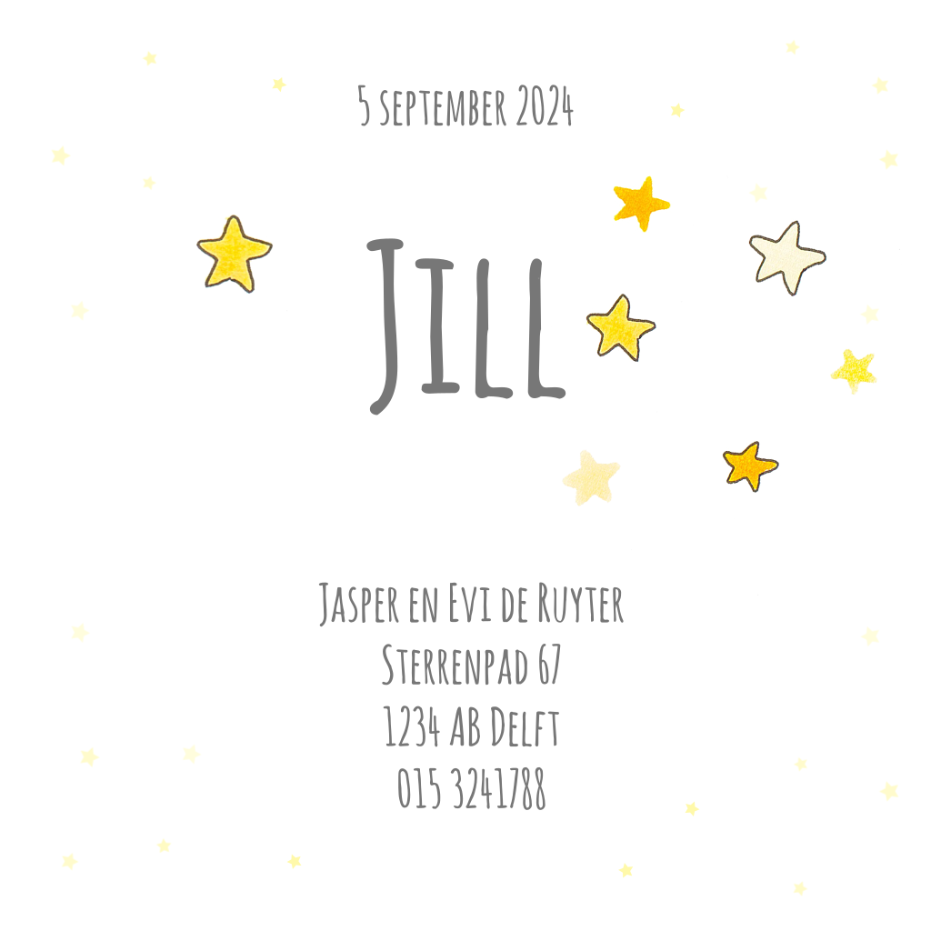 Lief geboortekaartje met zon, maan en sterren