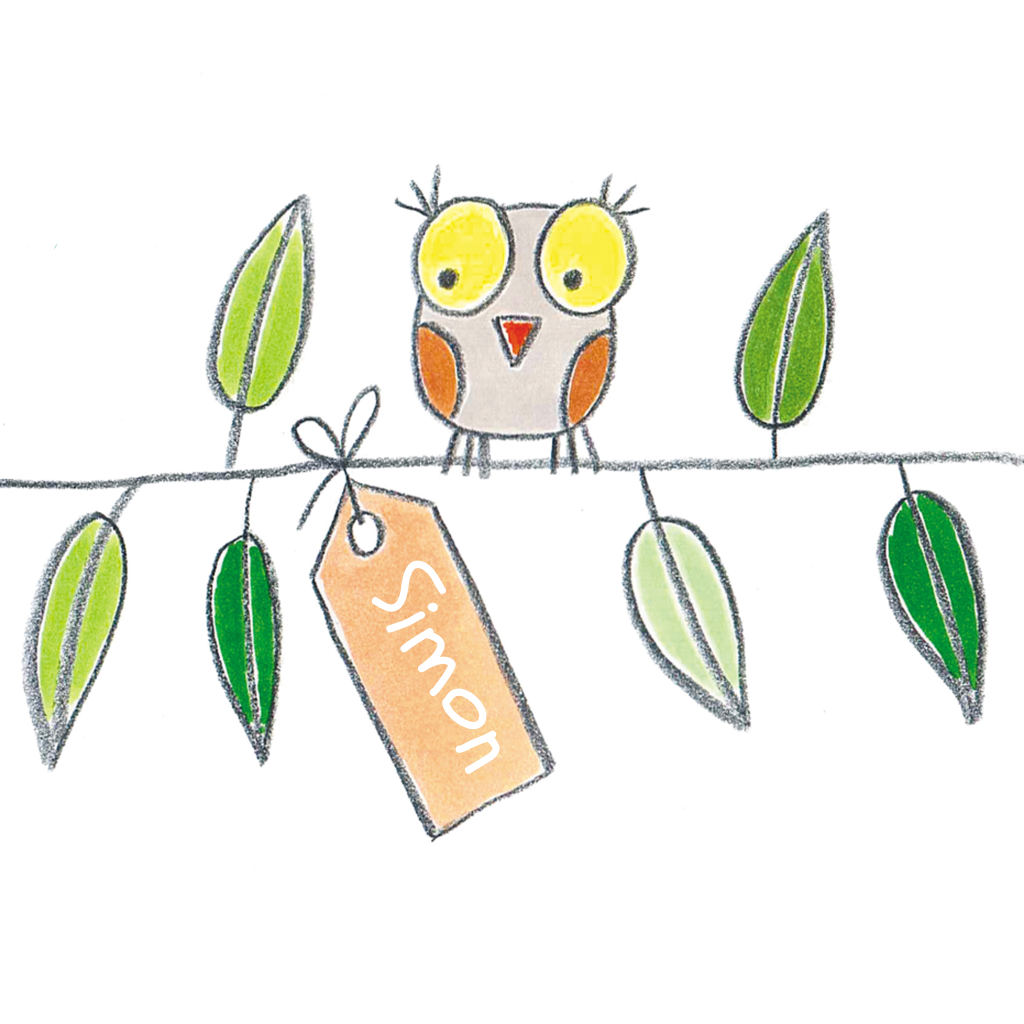 Getekend kaartje met een uil op takje