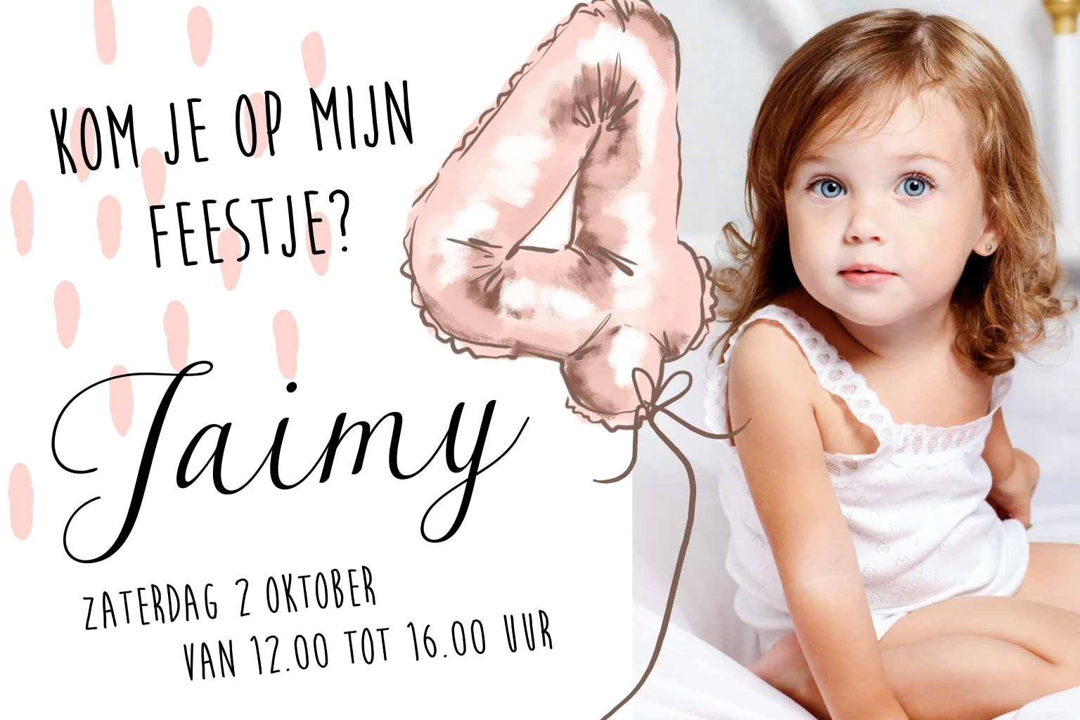 Lieve getekende uitnodiging voor een meisje met roze confetti en een ballon.