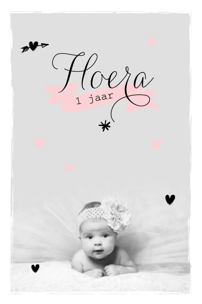 Hippe foto uitnodiging 1ste verjaardag meisje