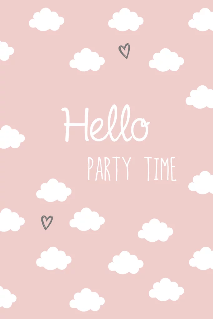 Uitnodiging kinderfeestje meisje met roze achtergrond en lief wolken patroon.