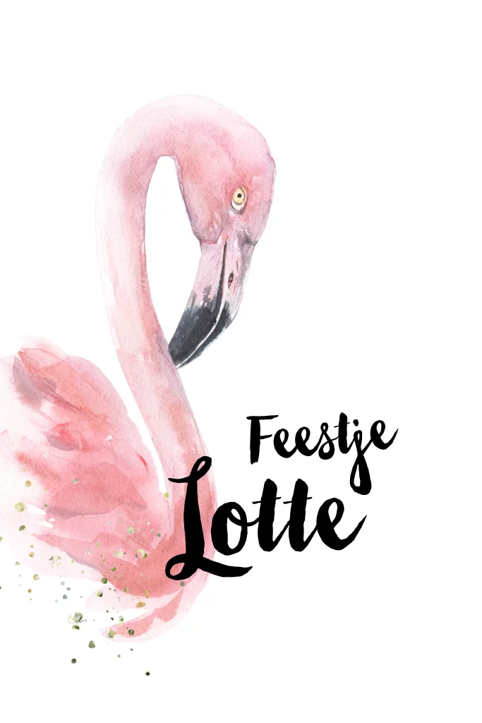 Lieve uitnodiging kinderfeestje meisje met een flamingo.