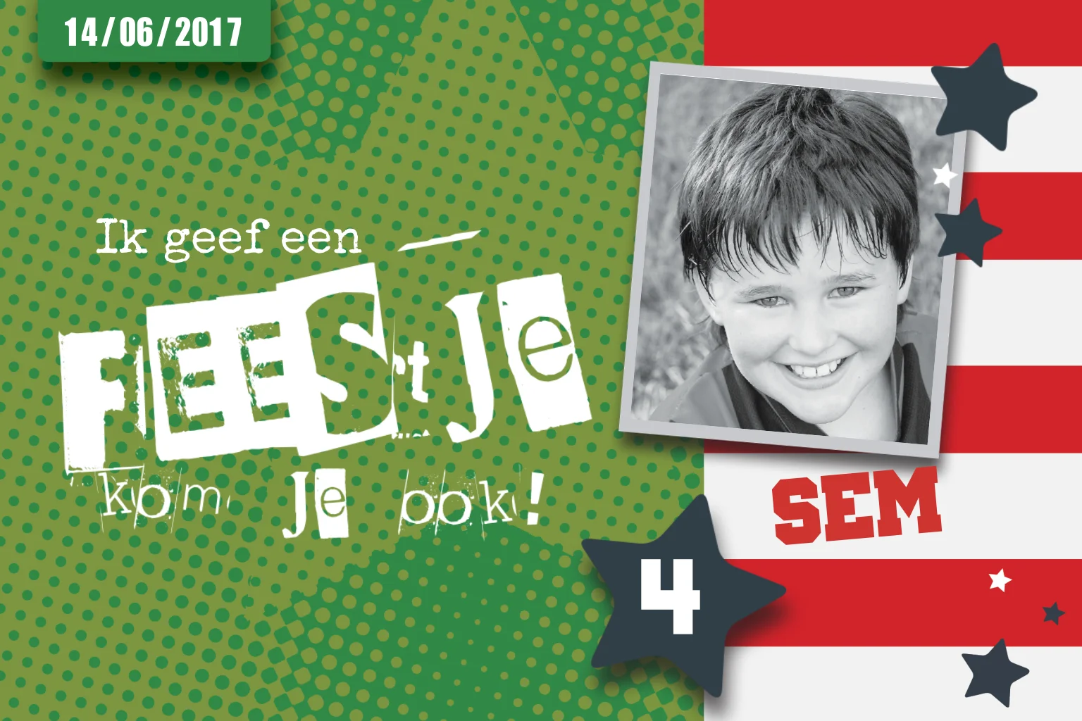Stoere uitnodiging 4e verjaardag jongen met foto