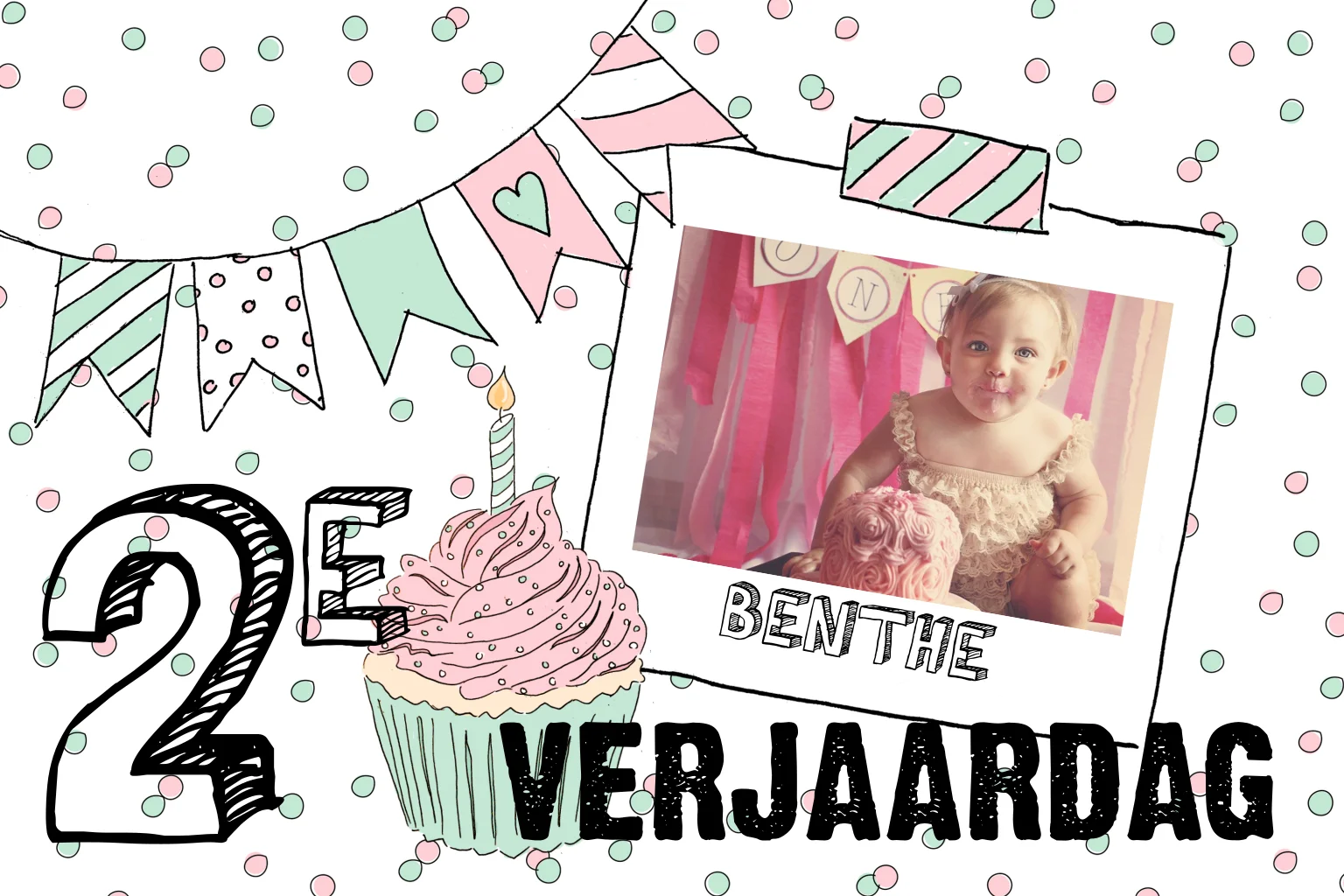 Uitnodiging verjaardag 2 jaar met cake en 1 kaartje