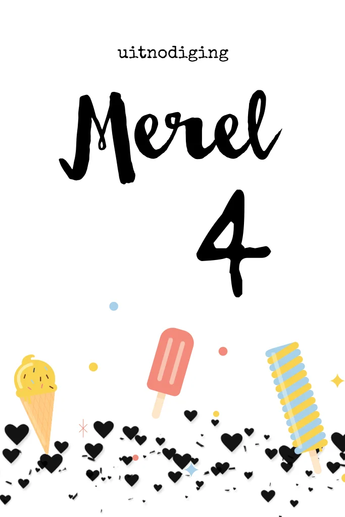 Vrolijke uitnodiging kinderfeestje 4e verjaardag met ijsjes.