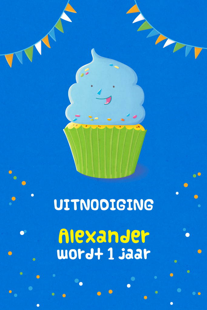 uitnodiging verjaardag feestje cupcake blauw jongen