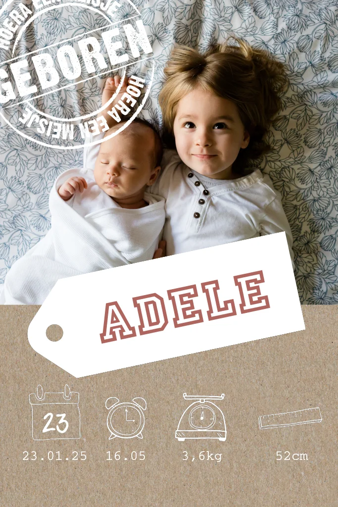 Kraft geboortekaartje voor een meisje met foto