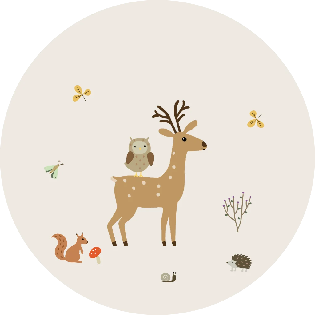 Een beige sluitsticker of naamsticker met bosdieren. Gebruik deze om je geboorteaankondiging compleet te maken of om je bedankjes persoonlijk te maken.