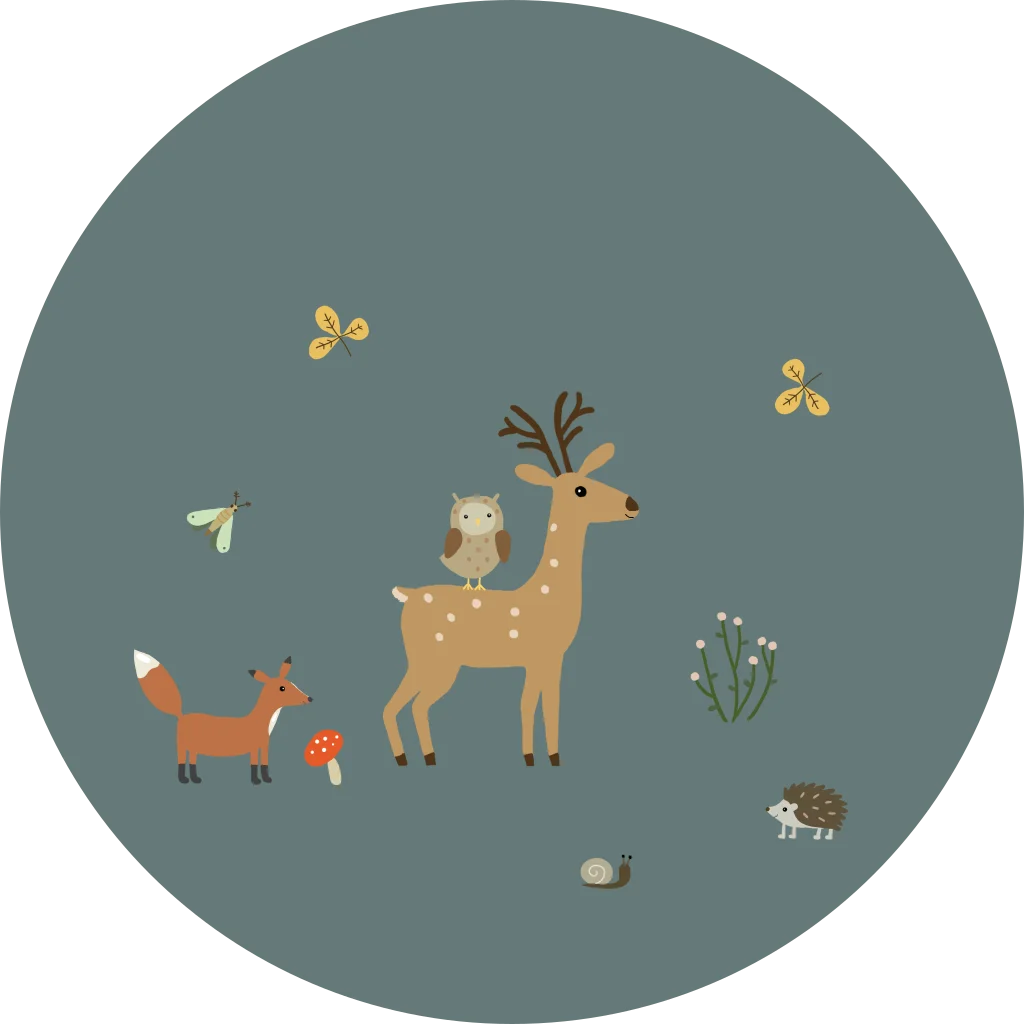 Donkergroene sluitsticker met bosdieren
