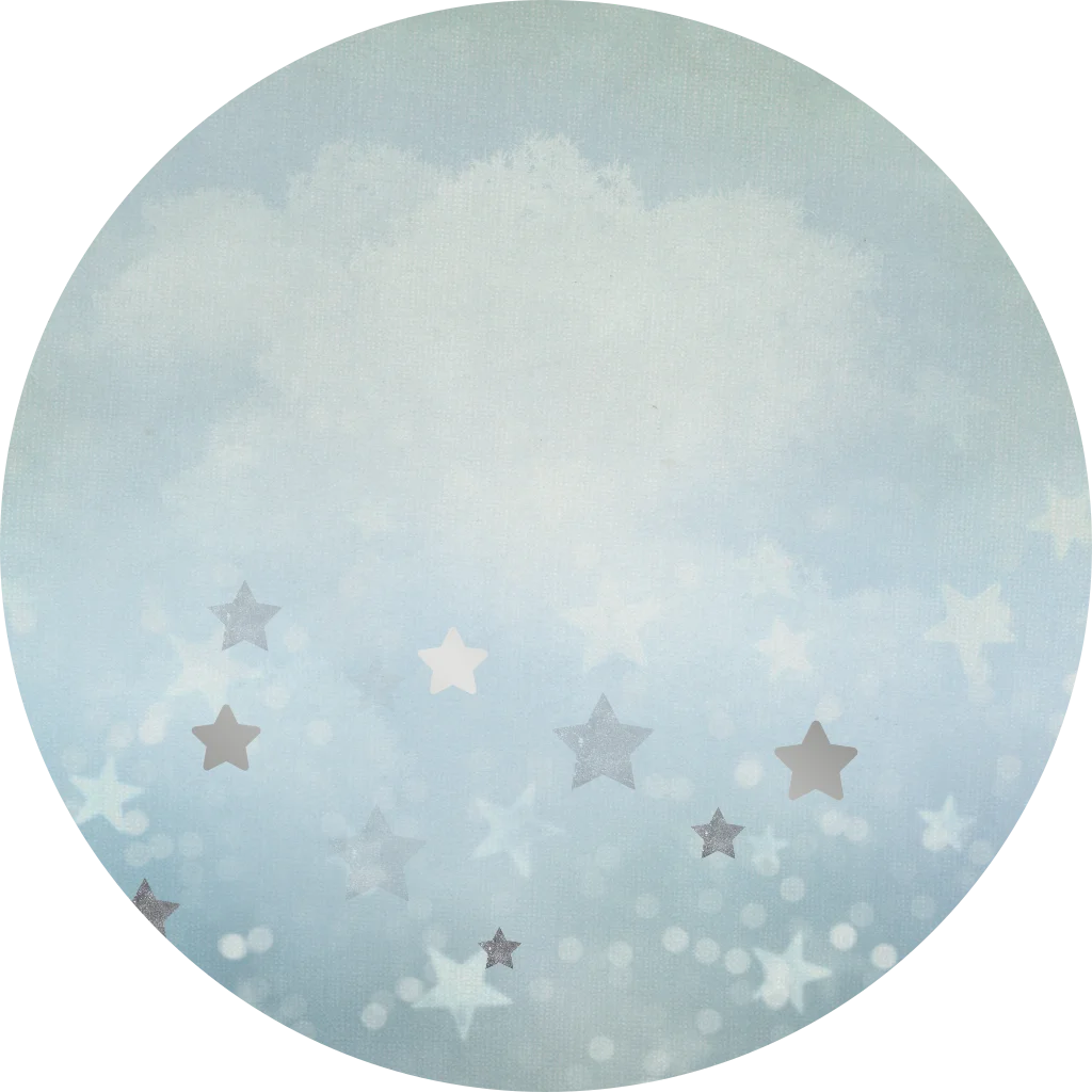 Een sluitsticker of naamsticker met lichtblauwe sterretjes. Gebruik deze om je geboorteaankondiging compleet te maken of om je bedankjes persoonlijk te maken.