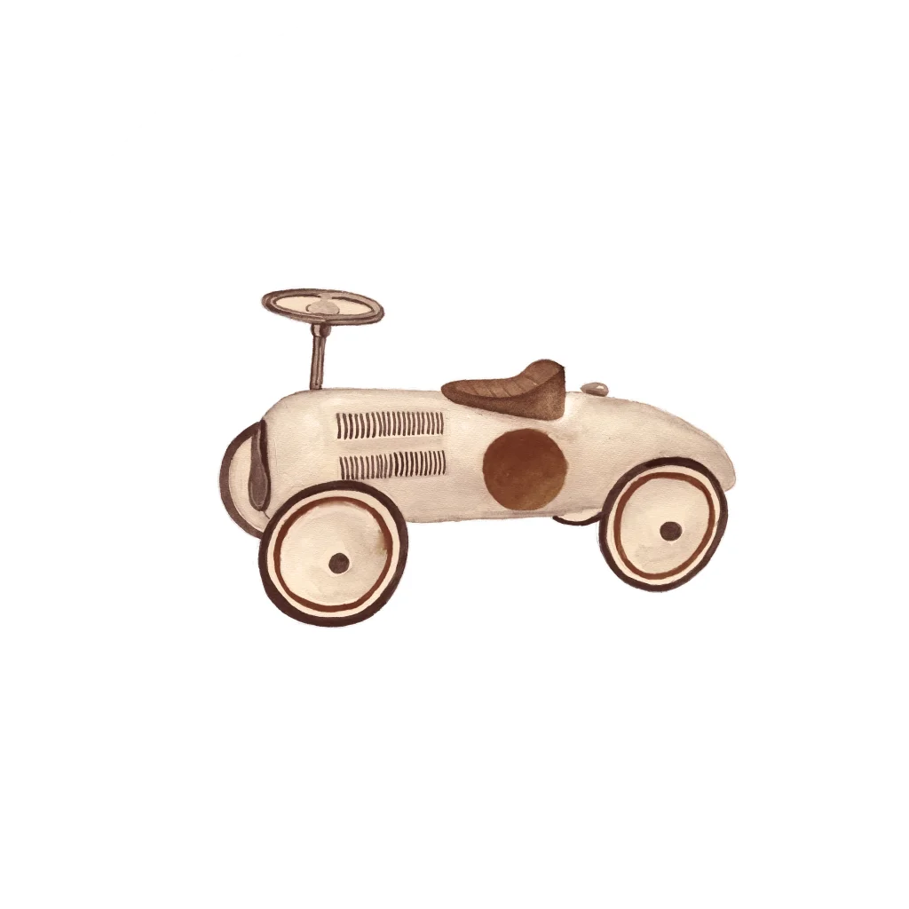 Een sluitsticker of naamsticker met een beige auto. Gebruik deze om je geboorteaankondiging compleet te maken of om je bedankjes persoonlijk te maken.
